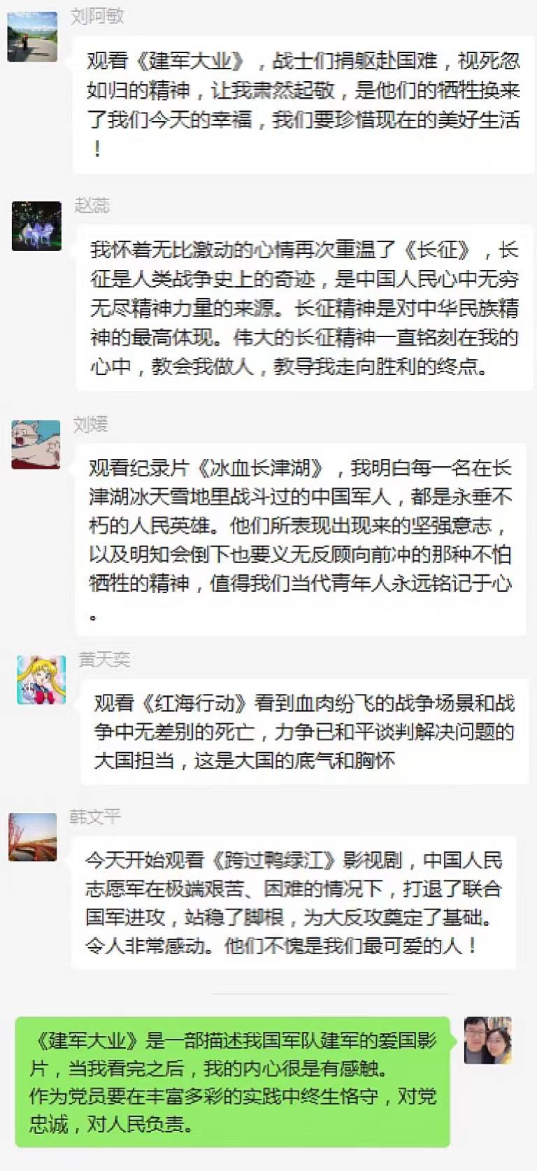 best365教工党支部全体党员居家自学、自行观看,纷纷将学习或观看影片的微感悟发到支部群里分享交流。(撰稿:best365 郑亚迪 审核:周晓燕)