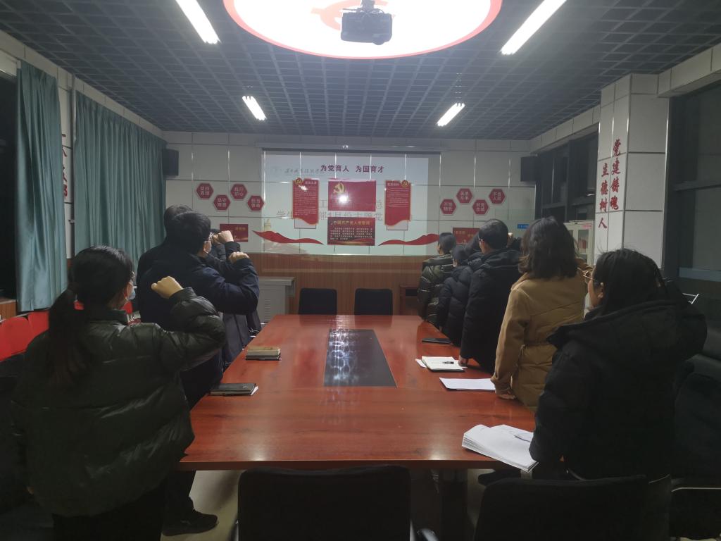 首先由黄蓉同志带领全体党员重温入党誓词。接着李超同志为大家分享了国家主席习近平发表二〇二四年新年贺词,带领教工支部全体党员集体学习了《中国共产党纪律处分条例》。随后教工支部党员针对学习内容进行了深入的交流研讨。活动最后安排了党员自学内容并组织了党员交纳党费。