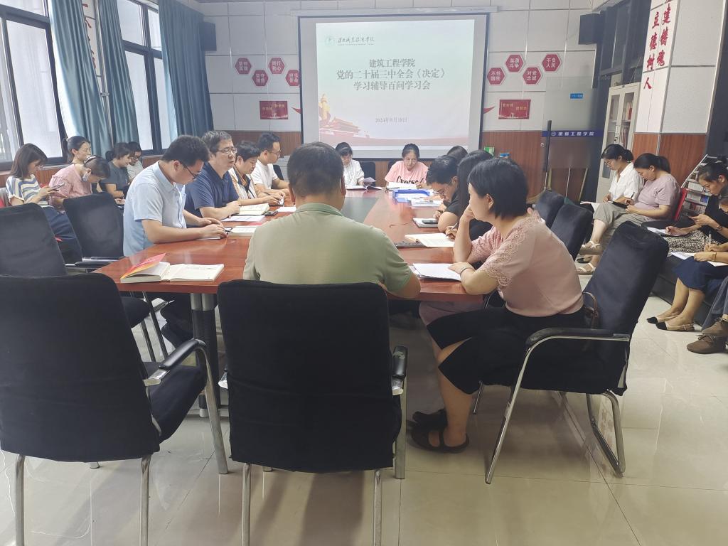 为了深入学习贯彻党的二十届三中全会精神,全面理解和把握《中共中央关于进一步全面深化改革推进中国式现代化的决定》(以下简称《决定》)的核心要义,9月18日下午14:30,best365在建工楼108会议室召开了《党的二十届三中全会<决定>学习辅导百问》学习会,会议由党总支书周晓燕主持,全体教职员工参加会议。