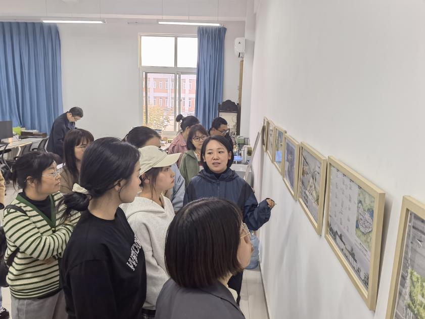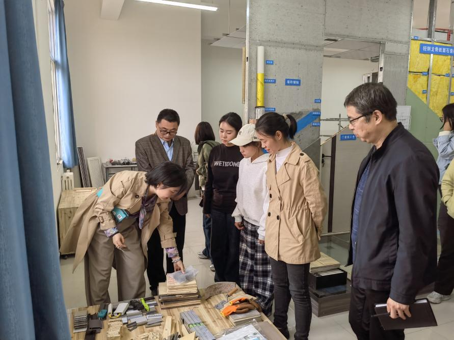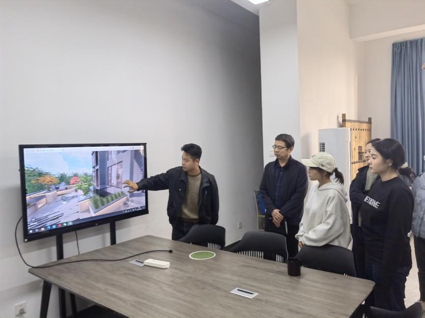 活动中,黄天奕老师首先就新建成的建筑装饰实训室进行了全面而细致的介绍,带领各位老师参观了装饰材料展示实训室、装饰施工工艺实训室,并结合当前实际状况,对装饰专业实训课程创新思路、改进策略及授课经验和大家进行了深入交流。随后,吾研同创工作室、空间规划工作室、施工图设计工作室三位负责教师,分别对相应工作室功能、作用等介绍。吾研同创工作室主要是带领员工通过室内设计项目,提升员工的技能,进行社会服务装饰装修技术服务;空间规划工作室主要开展规划设计、乡村振兴以及相关的科研工作;施工图设计工作室主要围绕CAD技能提升,带领员工进行国家、省级员工专业技能大赛的培训和提升;三个“工作室”相互独立,协同发展,共同促进了装饰专业的发展与创新。