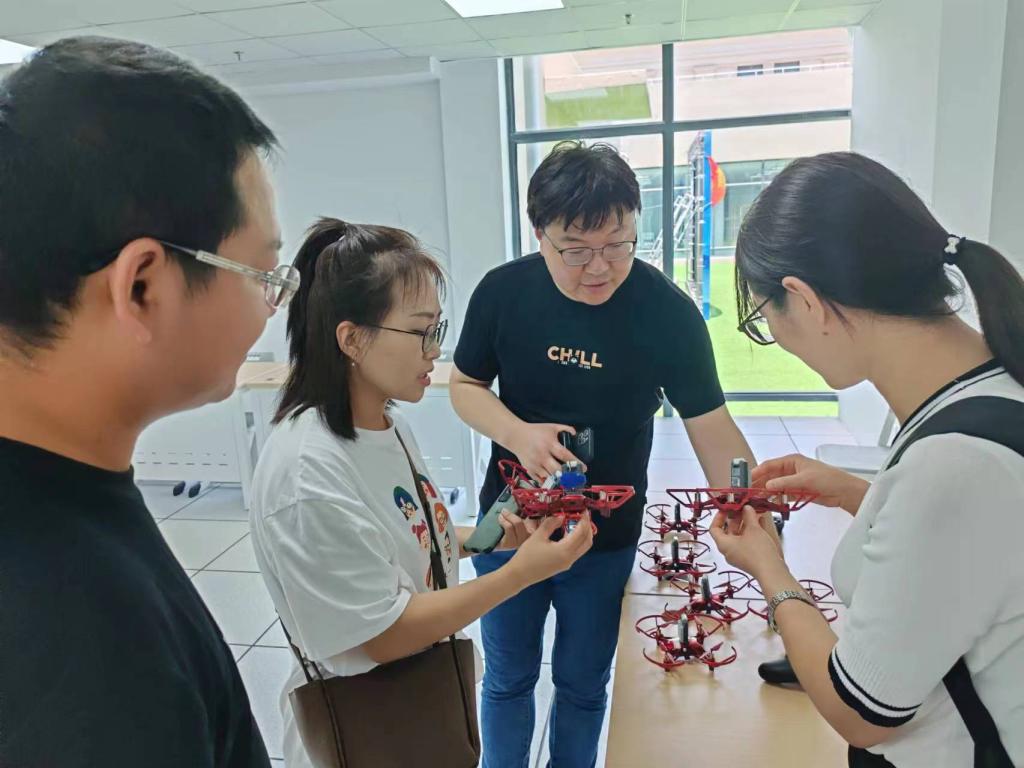 随后,参观了智能汽车实验室、工业机器人、无人机等实训室,体验了科技创新节的无人机迷宫赛道项目、无人机竞速飞行等项目,同时就人才培养的课程设置情况、实训项目设计、教材建设、技能比赛、产教融合等进行了交流。