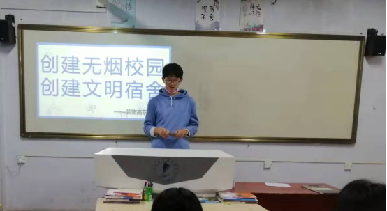 为加强宿舍管理,创建文明校园,10月25日晚自习,建筑各班组织召开了“创建无烟校园,创建文明宿舍”主题班会。班会上,同学们集体学习了校园禁烟规定和创建文明宿舍要求,倡导全体员工每天保持宿舍整洁卫生,养成健康文明的生活习惯。