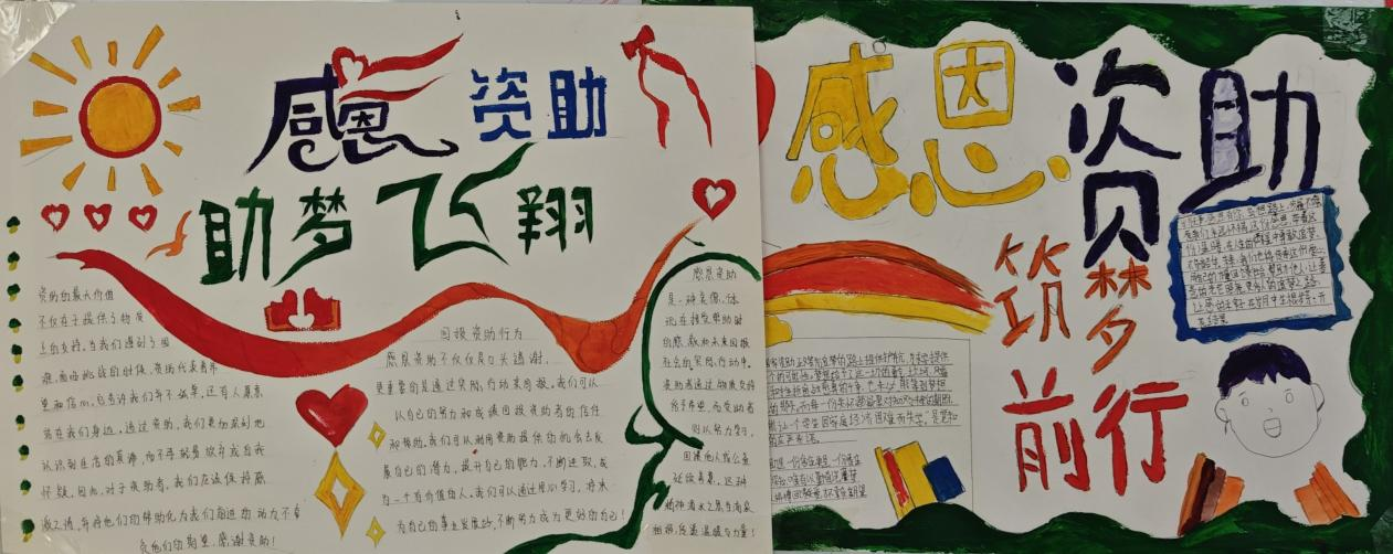 会后倡议同学们以手抄报这一直观而充满创意的方式,表达自己对国家、社会和公司资助的理解,得到了同学们的积极响应。大家利用课余时间精心构思、认真创作。