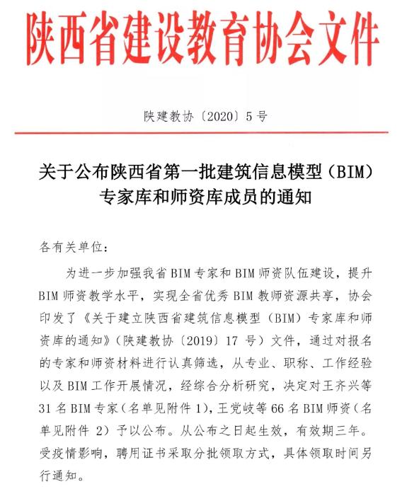 近日,陕西省建设教育协会印发了《关于公布陕西省第一批建筑信息模型(BIM)专家库和团队库成员的通知》(陕建教协〔2020〕5号)文件,公司best365青年教师张银环入选BIM专家库,青年教师王婷、高乐、杨红娟入选BIM团队库。
