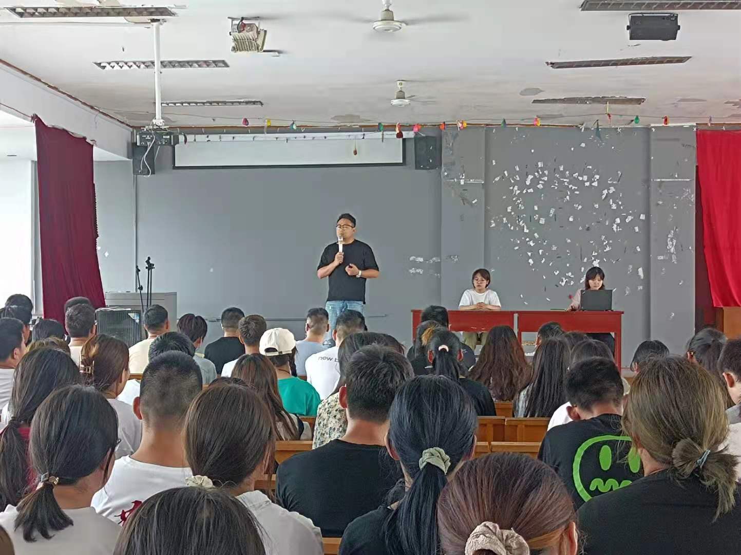 黄天奕在动员大会上将比赛的内容与规则做了详细的介绍,并将与竞赛相关的注意事项下发到了各个班级,将参赛人员安排到各个岗位,保证了比赛的公平公正,同时也希望同学们在比赛中能互相研讨,进一步学习到更多的设计理念。