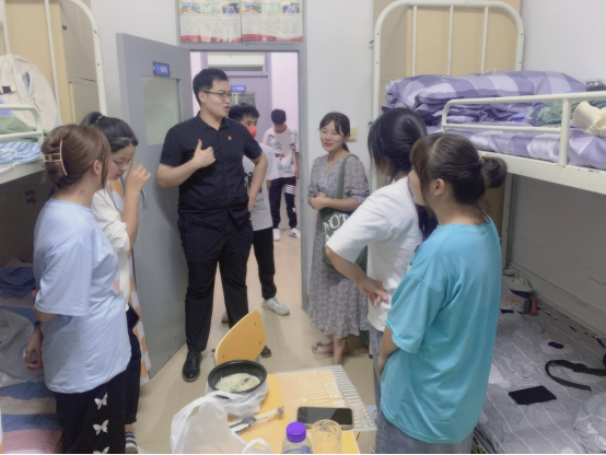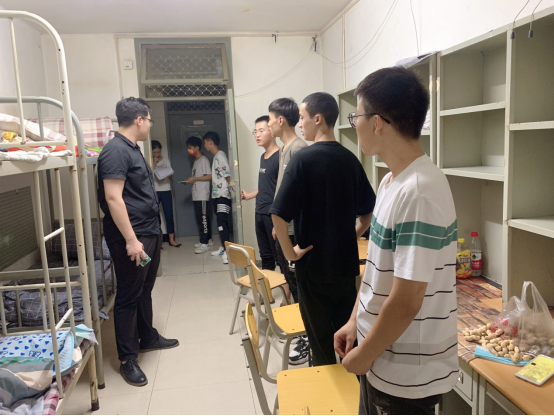 每到一个宿舍,班主任耐心询问同学们在宿舍生活有无遇到问题,提醒大家要注意宿舍安全问题,并要提高自我保护意识和警觉意识,不要轻易相信来宿舍推销人员,防止上当受骗。