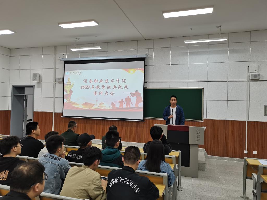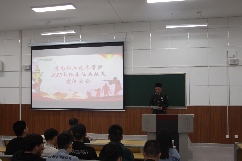 接着,赵国辉详细解读了在校老员工应征入伍的各项政策,他以算好“前途账、政治账、健康账、经济账”为切入点,重点阐述了员工入伍的十大好处,并用详实数据和生动案例,全面介绍了征兵安排、应征条件、入伍流程、优待政策等相关情况,还对报名时间、入伍后待遇及未来职业发展等员工关注的问题进行了认真讲解。他强调,传承红色信仰,肩负崇高使命,依法服兵役踊跃参军报国,为实现党在新时代的强军目标而努力奋斗是当代老员工义不容辞的历史使命。年轻的生命应披荆斩棘,无悔的岁月该浴火而生,将红色热血汇入祖国河山,携笔从戎,追逐梦想。他希望同学们积极响应党和国家的号召,充分发扬爱国拥军的优良传统,努力为部队输送新鲜血液,矢志奋斗,淬火成钢,参军报国,不负韶华。赵处长的宣讲内容丰富、深入浅出,激发了莘莘学子参军报国的热情,同时也饱含对青年学子立志军营成才的殷切希望。