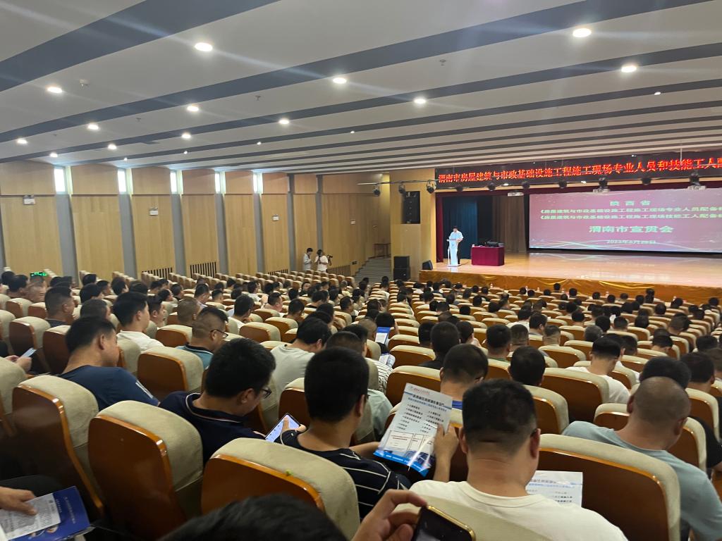 按照省住建厅统一安排,6月20日,渭南市房屋建筑与市政基础设施工程施工现场专业人员和技能工人配备标准宣贯会在公司召开。渭南市各县市区(管委会)建管负责人,质量安全监督机构负责人,注册地在我市的一、二级建筑施工企业和工程监理企业相关负责人,辖区在建项目负责人等近300人参会。陕西省建设教育协会秘书长杨越峰,陕西建工控股集团股份有限公司人力资源部顾问陈宝斌,陕西建工控股集团股份有限公司首席专家李西寿,公司及住建局有关领导出席此次活动,建工公司负责人及部分专业教师员工代表参加会议。