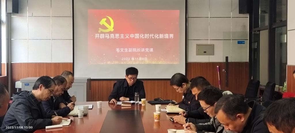 11月8日下午,公司党委委员、副经理毛文生在best365108会议室,就学习贯彻习近平新时代中国特色社会主义思想,为公司党总支和院机关后勤党总支、计财基建党支部50余名党员作了题为“开辟马克思主义中国化时代化新境界”的专题党课。活动由公司党总支副书记、经理孙志强主持。